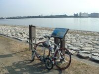 いやー、自転車で2時間走るだけでこんなところまで来れるんですねぇ。利根川を渡って茨城に入り、河川敷で一休み。